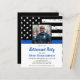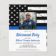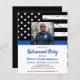 Convites de Formatura da Academia de Polícia Thin Blue Line ou Convites de Festa de Aposentadoria da Polícia. Celebre anos de serviço dedicado ou celebre seu novo graduado na academia de polícia e convide amigos e familiares para sua festa de aplicação da lei com este Convite de Aposentadoria da Polícia da Bandeira Thin Blue Line e convites de formatura da academia de polícia - design da bandeira americana dos EUA em cores da bandeira da polícia, design desgastado. Este convite de aposentadoria de policial também é perfeito para convites de formatura da academia de polícia, altere o local na personalização. Veja nossa coleção para presentes de aposentadoria de policial, presentes de formatura de policial, brindes e suprimentos. DIREITOS AUTORAIS © 2021 Judy Burrows, Black Dog Art - Todos os Direitos Reservados. Convite de Aposentadoria com Foto do Policial por um Preço Acess