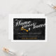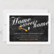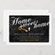 Na moda elegante e moderno Modelo de Convite para o lar Sweet, pronto para personalização. Projetado com texto branco caligráfico com uma tecla amarela próxima a uma tecla de bloqueio em fundo preto.