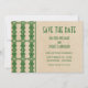 Anúncio de Salvar a Data com uma elegante e refinada borda Art Déco, apresentando uma borda com padrão deco verde esmeralda em um fundo com textura de papel falso. Este convite para salvar a data é uma ótima escolha para anunciar o seu casamento moderno. Fácil de personalizar, basta adicionar os detalhes do seu casamento nos campos de texto fornecidos. Clique em "Personalizar" para encontrar mais opções de personalização.