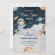 Divirta-se com este convite de aniversário de astronauta fofo! Com foguetes, planetas e um tema lúdico do espaço, é perfeito para festas no espaço exterior das crianças. Personalize facilmente com o nome do seu filho e os detalhes da festa.