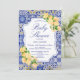 Convite de Azulejos Azuis Editáveis Limões