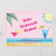 Este convite colorido à festa de solteira de fim de semana é acentuado com um sol brilhante, água azul, e um casal de bebidas tropicais, dando-lhe uma sensação divertida de Barbiecore. Se forem necessários itens de coordenação adicionais, entre em contato conosco em prettyfancyinvites@gmail.com com o seu pedido.
