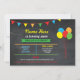 Convite de aniversário com balões de cores vibrantes, perfeito para festa de aniversário de qualquer idade. Basta alterar o texto para se adequar à sua festa. Impressão traseira incluída.