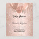 Para um chá de bebê, celebrando uma menina. Um fundo rosa dourado. Decorado com rosa dourado, gotas cor-de-rosa, efeito de tinta pingando e balões. Personalize e adicione o nome da futura mamãe e detalhes do evento. O nome e o texto: Chá de Bebê estão escritos com um estilo de letra manuscrita