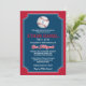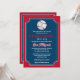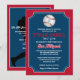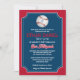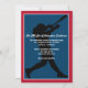 Se seu filho é um entusiasta de beisebol com sonhos de chegar às grandes ligas, então este convite de Bar Mitzvah em forma de bilhete, em vermelho, azul-marinho e branco, com um grande baseball branco e vermelho com uma Estrela de Davi azul-claro pode ser uma maneira perfeita de celebrar seu grande dia. Este convite de beisebol tem o nome do seu filho impresso em uma fonte esportiva vermelha com seu nome hebraico em branco abaixo. Há também letras especiais vermelhas e brancas em uma fonte de estilo de liga de beisebol para as palavras "Bar Mitzvah". O verso é vermelho, azul-marinho e branco com uma silhueta preta de um batedor balançando um taco com uma redação opcional de recepção impressa em branco por cima. Exclua as palavras se desejar usar o cartão de recepção coordenado.
