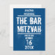 Todo grande Bar Mitzvah começa com um pouco de agitação. Gere um pouco da sua própria com este cartão postal de save the date e certifique-se de que seus amigos e familiares estarão na primeira fila. Este convite de Bar Mitzvah tem um fundo desgastado em azul-marinho com uma fonte grunge complementar que une tudo. Você pode personalizar praticamente todas as informações impressas com o nome do seu filho e a data do evento... basta preencher os campos!