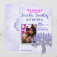 Combine facilmente as cores do texto com a sua foto neste lindo convite com brilho azul e prata! Celebre o seu Bat Mitzvah com o tema Árvore da Vida azul celeste e brilhante. Não se esqueça de papelaria e decoração de festa coordenadas!
