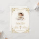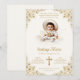Celebre o sacramento especial do seu filho com este convite de batismo elegante do Niño Charro, apresentando um doce menino vestido com um traje charro tradicional branco e dourado. Acentuado com flores douradas ricas, ornamentos rebuscados e uma bela cruz, este modelo é ideal para cerimônias católicas com um toque de herança e graça.