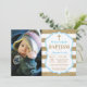 Convite de Batismo com Brilho Azul e Dourado com foto personalizada. Batismo de Menino. Primeira Comunhão. Batizado. Dedicação de Criança. Listras Douradas e Brancas. Para personalização adicional, clique no botão "Personalize" e use nossa ferramenta de design para modificar este modelo.