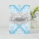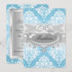Convite de Batismo Azul. Damasco e lindo laço em diamante. Personalize com seus próprios detalhes. Por favor, note que todas as imagens planas! elas não têm renda, laço ou jóias reais!