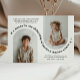 Um convite de batismo conjunto moderno com 2 das suas próprias fotos em forma de arco. O texto do título é curvado em torno das fotos junto com estrelas. Você pode mudar a cor de todo o texto e das estrelas neste design.