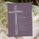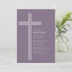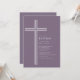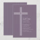 Celebre o dia especial da sua filha com este convite de batismo moderno com cruz roxa. Com um design de cruz de linha minimalista e limpa em um fundo roxo suave e silenciado, este convite religioso elegante oferece um visual atemporal e sofisticado.