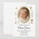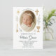 Celebre o dia especial da sua bebê com este convite de batismo elegante e personalizável. Características de uma paleta de cores neutras suaves com símbolos religiosos em ouro desenhados à mão — cruz, vela, cálice — e uma moldura de foto oval centralizada. Um design atemporal perfeito para cerimônias modernas ou tradicionais.