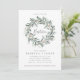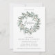 Um design de convite de batismo com uma coroa rústica com folhagem verde e frutos silvestres.