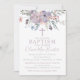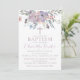 Um convite simples e delicado para o batizado, batismo ou primeira comunhão do seu filho com flores roxas e lilases. Os detalhes são fáceis de alterar para se adequar ao seu evento.