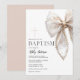 Este convite apresenta uma paleta de cores bege pérola suave, simbolizando calor, pureza e elegância. No seu centro está um delicado laço, adicionando um toque de feminilidade e charme. Itens correspondentes disponíveis.