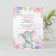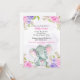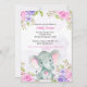 Convite de Batismo de Menina Elefante Aquarela Flo