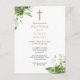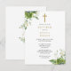 Este cartão postal de convite de batismo botânico de eucalipto elegante pode ser personalizado com suas informações em tipografia sofisticada com iniciais de monograma no verso. Criado por Thisisnotme©