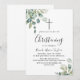 Celebre um marco precioso com este elegante convite de batismo de meados do verão. Com um design botânico exuberante, apresenta belas folhas de eucalipto pintadas à aguarela e folhas verdes viçosas, criando um visual fresco e atemporal perfeito para uma dedicação de bebê de coração.