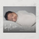 Este convite de batismo de foto de bebê com Script Moderno apresenta uma bela foto horizontal com sangria total e arte de batismo com letras à mão e texto editável mínimo. Clique no botão editar para personalizar este design.