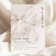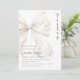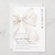 Convite de batismo elegante que apresenta um laço marfim neutro elegante e tipografia sofisticada.
