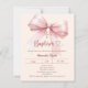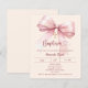 Um fundo macio creme e cor de pêssego, decorado com um grande laço rosa e uma cruz dourada. Personalize e adicione um nome e detalhes.