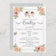 Celebre o Batismo dos seus gêmeos com este convite religioso. Com dois anjinhos—um menino e uma menina—e flores cor-de-rosa fofas.
