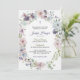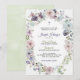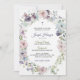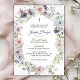 Convite de batismo elegante com coroa de flores com flores pastéis e folhagens em torno do texto. Convida os convidados para uma cerimônia de batismo, transmitindo um tom sereno.
