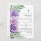 Celebre o Batismo Católico religioso de seu filho com este elegante Convite de Batismo com Flores Roxas e lindas Folhas Verdes. Disponível em espanhol.
