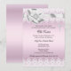 Convite de Batismo Rosa. Lindo laço de seda branca com joia e desenho de renda vintage com cruz de joia. Por favor, note que todas as imagens são planas!