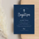 Convite de batizado e batismo com design azul e branco e foto personalizada e O texto e as cores podem ser editados.