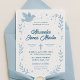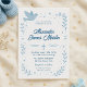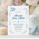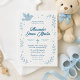 Celebre o dia especial do seu filho com este encantador convite de batismo com pombo, estrelas e elementos florais em azul suave. O design elegante exibe o nome do seu bebê, detalhes do evento e uma cruz. Uma maneira bonita e significativa de convidar familiares e amigos para a cerimônia de batismo do seu pequeno. Personalizável com os detalhes do seu evento para um toque verdadeiramente pessoal.