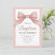 Convite de Batismo Rosa com Laço Elegante e Classe