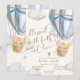 Celebre o batizado dos seus lindos gêmeos com este convite de batizado de gêmeos meninos doce. O design apresenta uma ilustração de um balão de ar quente com um ursinho de pelúcia macio, combinada com uma tipografia moderna e atemporal, tornando-o perfeito para uma celebração significativa e alegre.