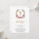 Convite de batismo em rosa e dourado. Convite de Bautizo em espanhol moderno e elegante, dourado e rosa. Este design moderno e elegante apresenta uma linda grinalda floral dourada e rosa adornada com um laço delicado e uma cruz dourada no interior. A palavra "bautizo" é elegantemente escrita em letras douradas manuscritas, adicionando um toque de sofisticação. Os detalhes da celebração são destacados em letras maiúsculas modernas sobre um fundo branco crocante. Perfeito para anunciar o batismo do seu filho com estilo e graça, este convite combina belamente elementos contemporâneos com charme atemporal.