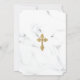Convite de Batizado moderno e elegante com fundo de mármore branco, cruz dourada elegante, tipografia Batismo em letras douradas da moda. Para editar este modelo, clique em personalizar ainda mais.