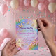 Dê as boas-vindas à sua bebê com este adorável convite temático de borboletas, repleto de cores pastéis suaves e borboletas voando!