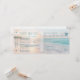 Lindo pôr do sol rosa e pêssego no oceano sobre as ondas azul turquesa em um fundo de areia lisa na passagem de embarque tema de viagem de convite de casamento de praia que inclui um cartão de RSVP que os convidados podem cortar e devolver. Há espaço no verso para informações de viagem e hotel.