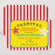 Convite de Bilhete de Festa de Aniversário Listrado de Carnaval. As estrelas são removíveis ou você pode adicionar texto. Elas também são redimensionáveis para ficar maiores ou menores.
