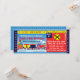 Convite de Bilhete de Trem de Viagem para Festa de Aniversário de Crianças. Personalize todas as áreas de texto com o seu próprio texto. Certifique-se de que o texto ao longo das bordas esteja dentro do intervalo de impressão.