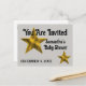 Convide familiares e amigos para um chá de fraldas com este cartão postal barato, com estrelas douradas. A frente exibe duas estrelas douradas e informações sobre o chá de fraldas. As costas convidam os convidados a acolher uma super estrela. Todo texto pode ser rapidamente personalizado.