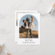 Invitaciones de boda en español. El anverso de esta invitación muestra una foto de los novios en forma de arco. Debajo, sus iniciales en tipografía elegante, y los datos más importantes de su boda. El reverso inclui otra foto em todos los datos de la ceremonia. Versión Inglés también en lábil.