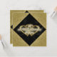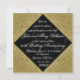 Um design de imagens Digitalbcon com um design de cores em cetim preto e florescimento dourado com uma variedade de imagens personalizadas, formas, padrões, estilos e fontes neste cartão de "Aniversário de Bodas de Ouro" único. Este convite elegante e atraente vem completo com um design correspondente no verso com letras de texto personalizáveis para se adequar à sua ocasião especial.