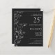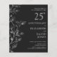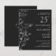 Este convite de bodas de prata de 25 anos de casamento com folhas elegantes e prata pode ser personalizado com suas informações em tipografia prateada moderna. Projetado por Thisisnotme©