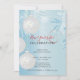Bolas de Natal, pérolas e flocos de neve de cebola branca elegantes sobre um fundo azul claro
