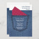 Este convite de festas na moda ocidental apresenta um fundo de bolso de jeans azuis com um dentro. É perfeito para qualquer celebração de temas ocidentais para crianças ou adultos.O cartão é fácil de personalizar com seu texto, fonte, cor da fonte e escolha de seis tipos de papel.