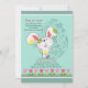Um belo coelho da Páscoa está em movimento neste adorável convite sazonal. O fundo lacrimogêneo apresenta um ovo floral de Páscoa e uma borda de tulipas vermelhas e rosa. (FP)