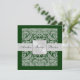 Faça uma declaração elegante com o nosso convite para casamento da fronteira do Damask do Silver & Green Monograma. Totalmente personalizável.