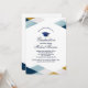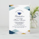 Um convite para a formatura moderna com bordas de boné de formatura, azul escuro, azul claro, cinza e triângulo dourado. (FP).<a href='https://www.freepik.com/free-vector/blue-graduation-cap_1294512.htm'>Concebida por Freepik (). </a>() O cartão é fácil de personalizar com seu texto, fonte, cor da fonte e escolha de seis tipos de papel.<br/>() Não exatamente o que você está procurando? Todos os nossos produtos podem ser personalizados para atender às suas necessidades sem custos adicionais.<br/>() Basta entrar em contato conosco em askpixieprints@aol.com.<br/>() Coordenar os produtos disponíveis: