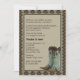 Um convite fantástico com botas western em um fundo de pele de cobra. Use-o para qualquer ocasião com tema western.